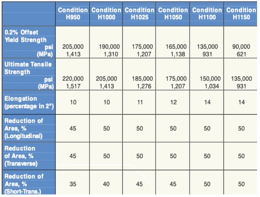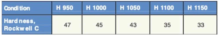 in air. Heat treatment of brazed components may be done in inert atmospheres. Reducing atmospheres should not be used because of the potential for hydrogen contamination. Hardness in solution annealed is app. 33 HRC.